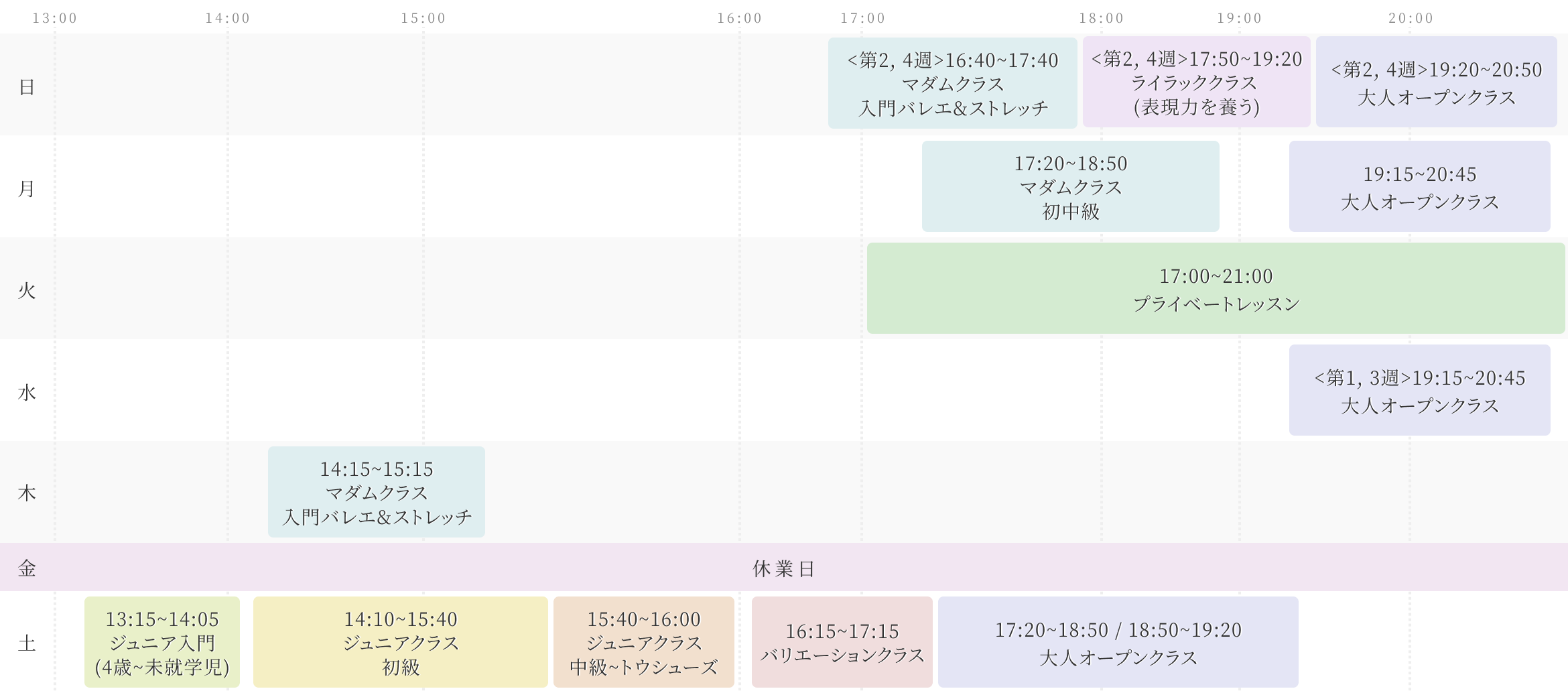 ※大人オープンクラス・マダムクラスは、経験2年以上の方が対象です。